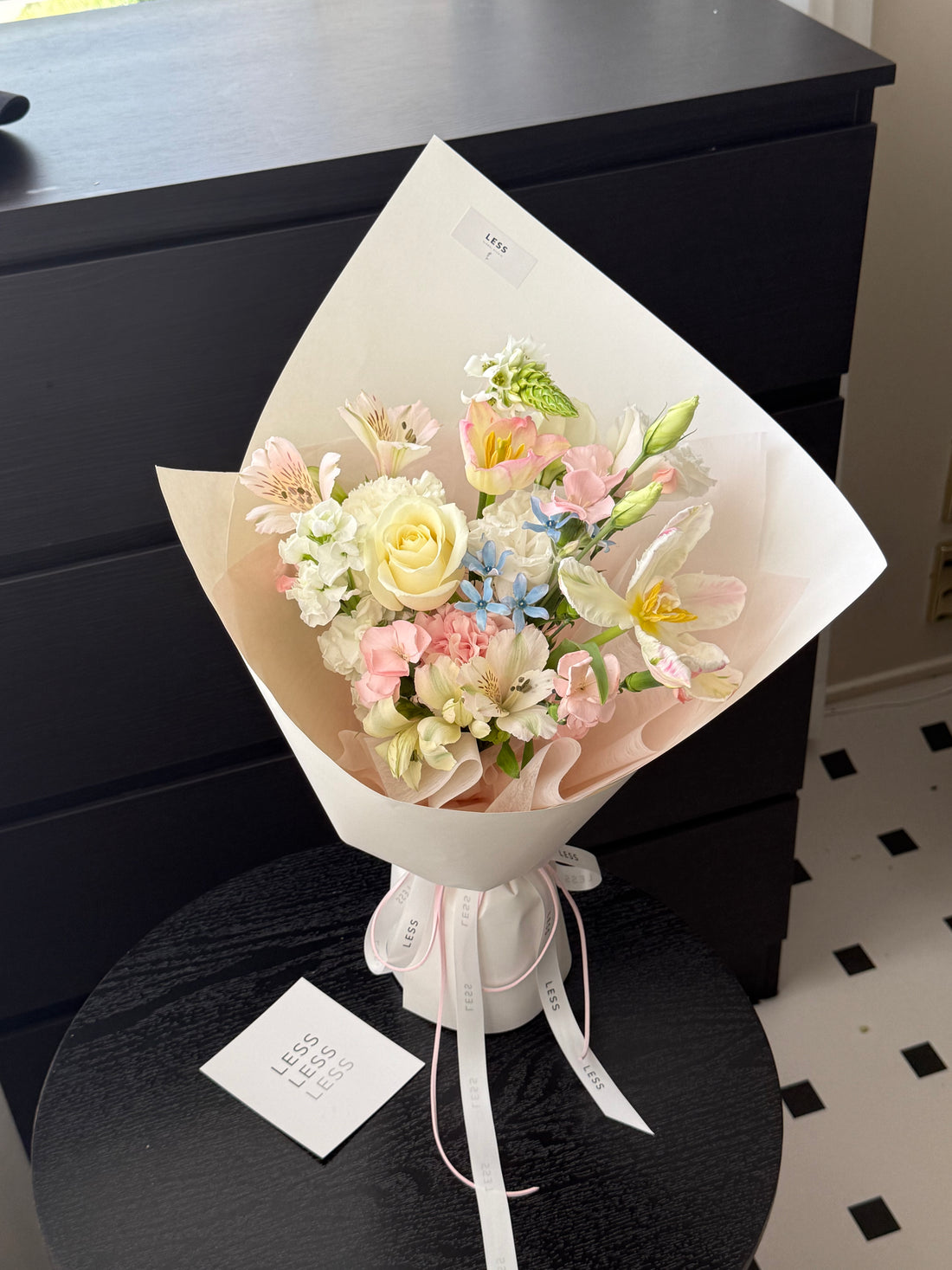 Our florists will thoughtfully create your bouquet using fresh seasonal blooms — including tulips —...
