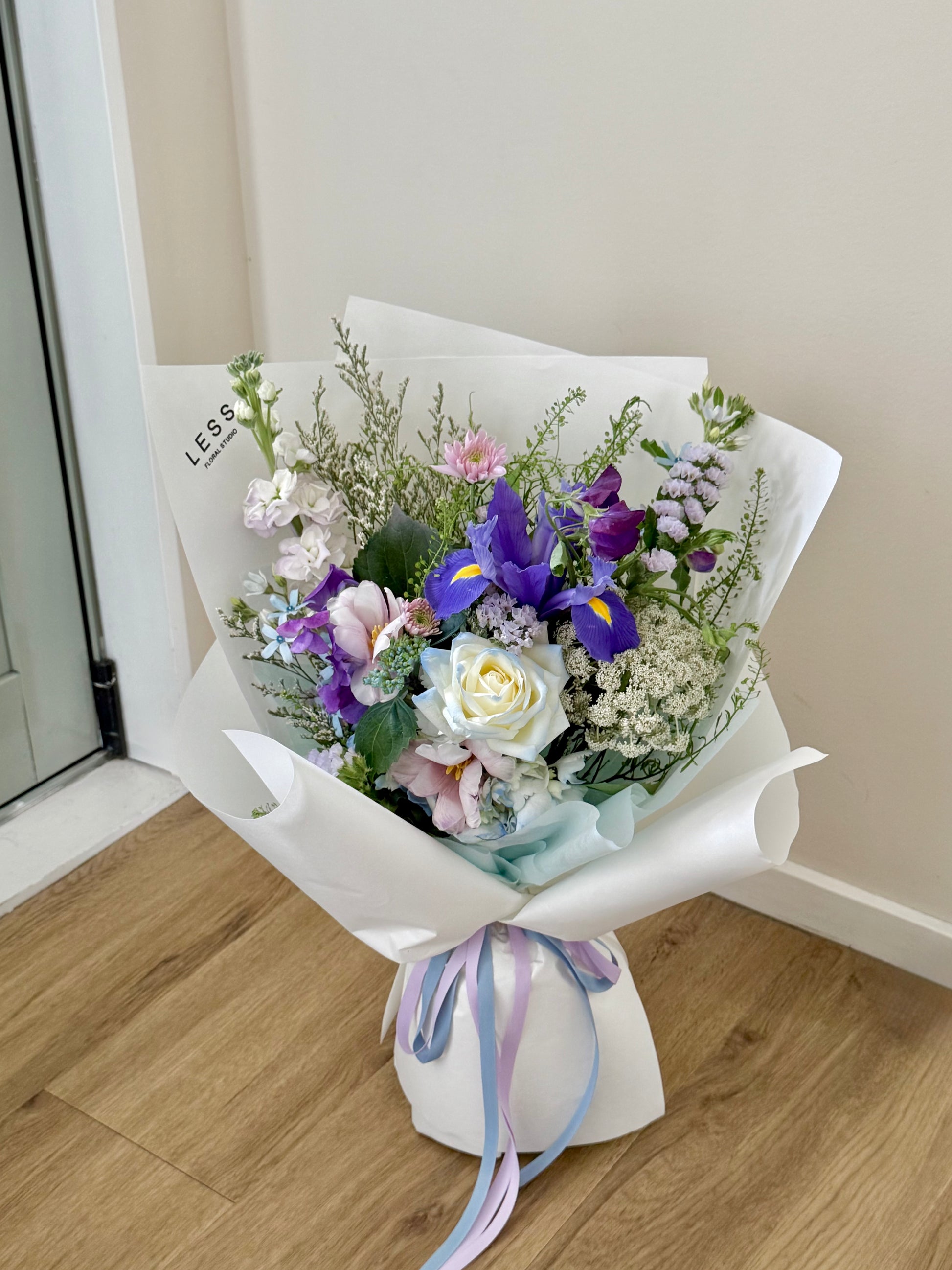 Our florists will thoughtfully select the most beautiful seasonal blooms to create a bouquet in similar tones and style to the picture — designed with care, and just for you.
