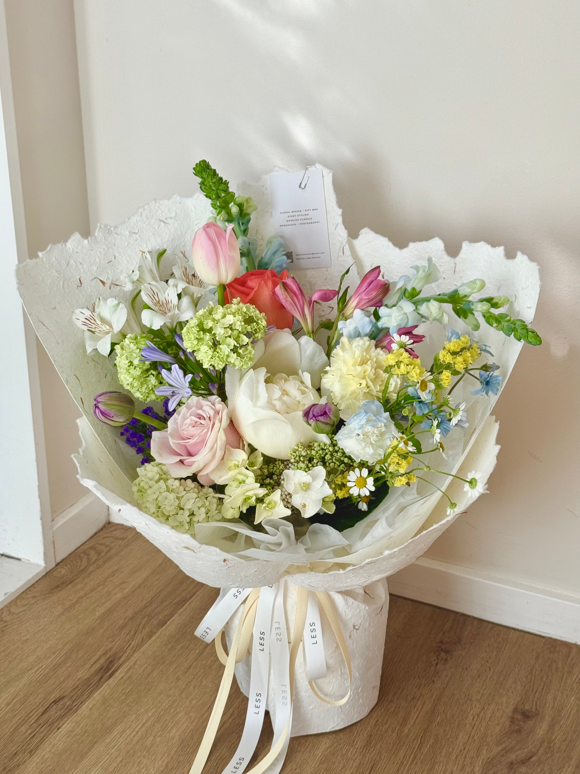 Kindly note: The flowers shown are for inspiration only. Each arrangement is one of a kind and will vary depending on what's fresh and in season on the day.