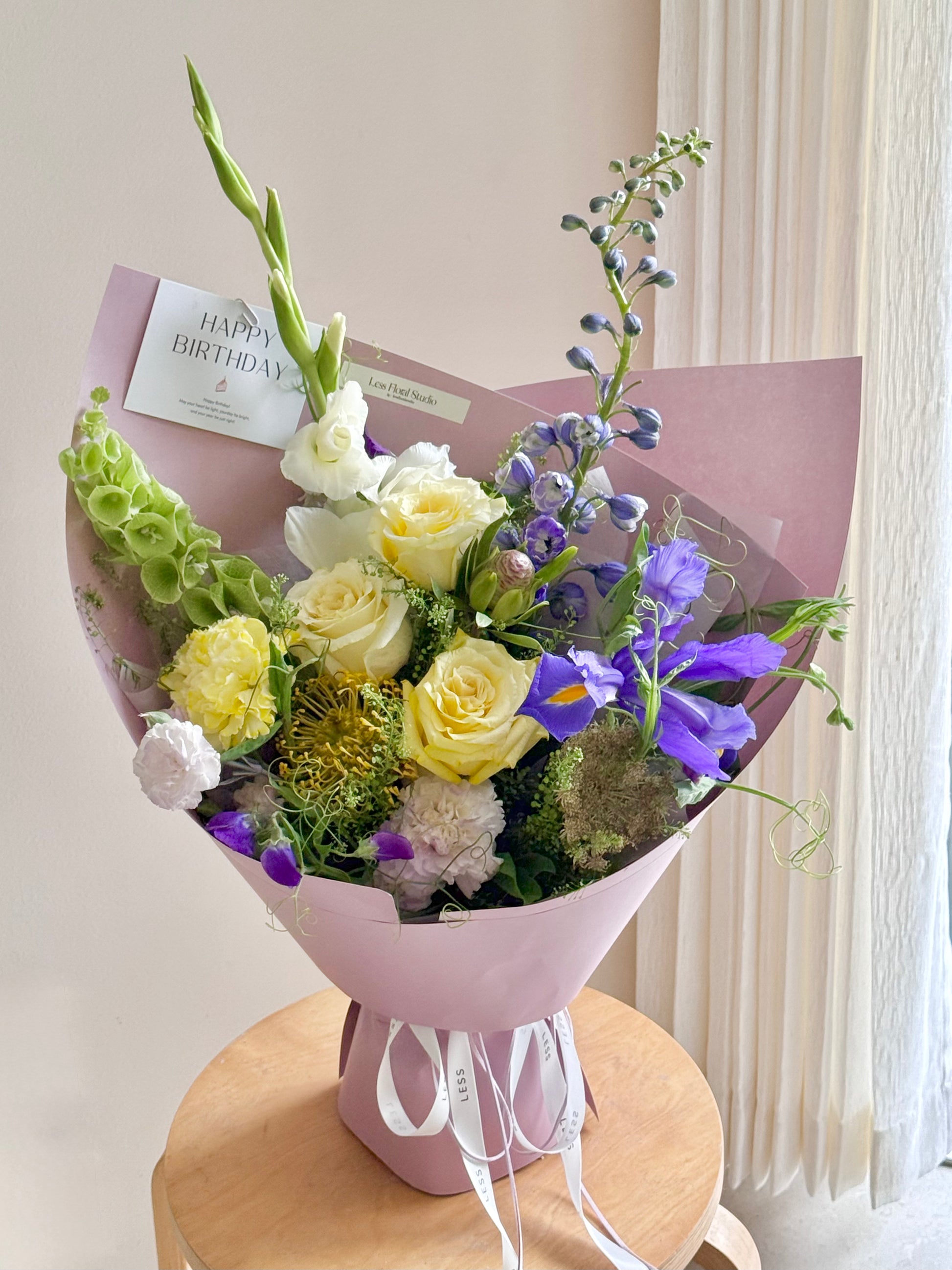 Kindly note: The flowers shown are for inspiration only. Each arrangement is one of a kind and will vary depending on what's fresh and in season on the day.